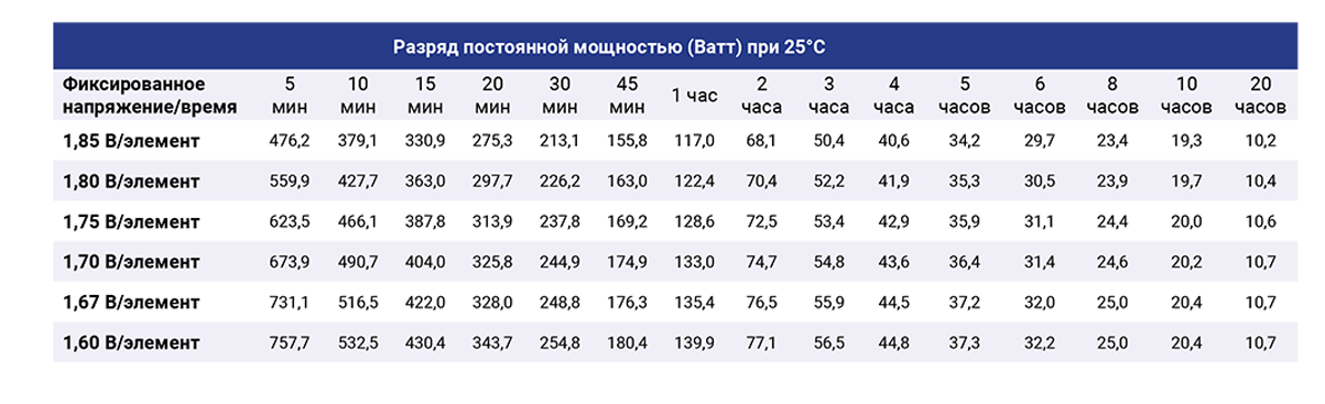 Низкое внутреннее сопротивление и высокие разрядные характеристики.