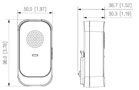 Встроенный динамик; Настраиваемые мелодии и громкость (через DMSS). Работа с несколькими дверными звонками; Wi-Fi 2.4ГГц. Питание:100–240AC 50/60 Hz. Рабочая температура: –10 °C до +45°C. Корпус: пластик+ткань.