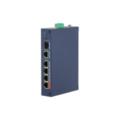 Порты: 4 RJ45 10/100Мбит/с (PoE/PoE+/Hi-PoE), 1 RJ45 10/100/1000Мбит/с (uplink), 1 SFP 1000Мбит/с (uplink); мощность PoE: порт 1 до 60Вт, порты 2~4 до 30Вт, суммарно до 60Вт; PoE watchdog, передача до 250м; питание: 48~57В(DC); грозозащита: до 6кВ; рабочая температура: -30°С~+65°С; IP30, IK06; монтаж на DIN-рейку