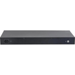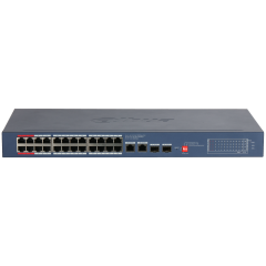 Порты: 24 RJ45 10/100/1000Мбит/с (PoE/PoE+/Hi-PoE/IEEE 802.3bt), 2 RJ45 10/100/1000Мбит/с (uplink), 2 SFP 1000Мбит/с (uplink); мощность PoE: порт 1~4 до 90Вт, порты 5~24 до 30Вт, суммарно до 240Вт; PoE watchdog, передача до 250м; питание: 100~240В(AC)