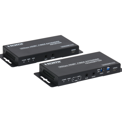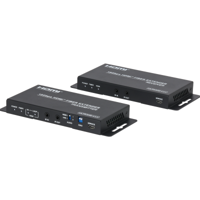Максимальная длина кабеля при использовании одномодового оптоволокна: до 10км; при использовании многомодового оптоволокна: до 300м; cовместимость: HDMI v.2.0b и ниже; разрешение: до 4K; в комплекте приемник и передатчик