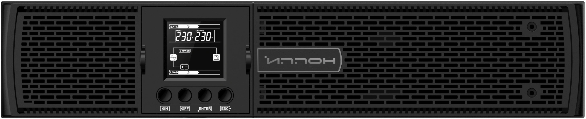Одним из ключевых преимуществ модели является её практичность и удобство: ИБП прост в установке, эксплуатации и обслуживании. Металлический корпус обеспечивает высокую механическую прочность, а информативная передняя панель с ЖК-экраном и механическими кнопками упрощает контроль параметров. Дисплей отображает режим работы, уровень заряда, подключённую нагрузку, текущее напряжение и частоту сети.