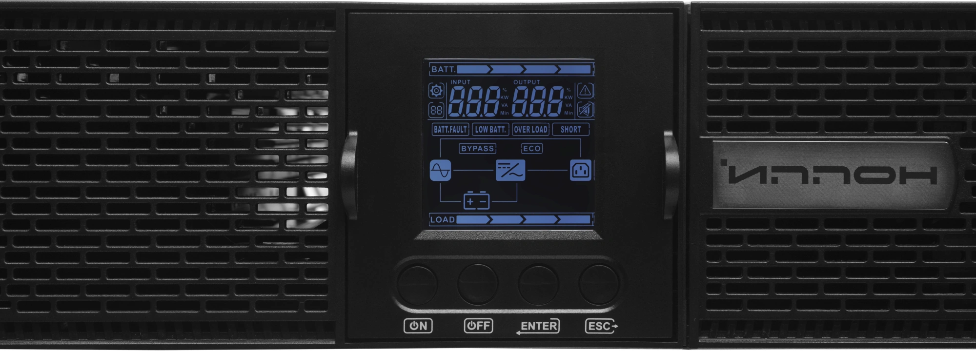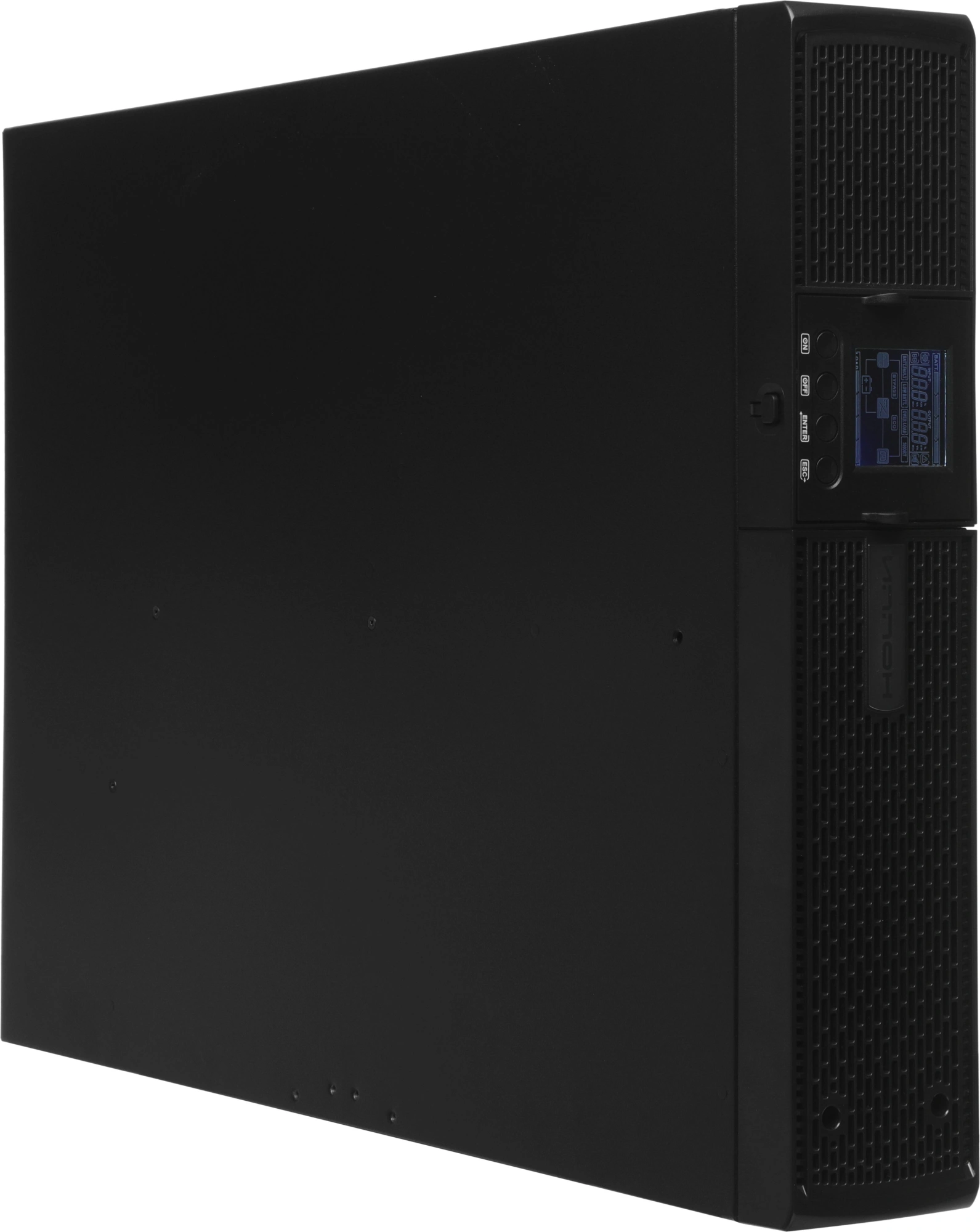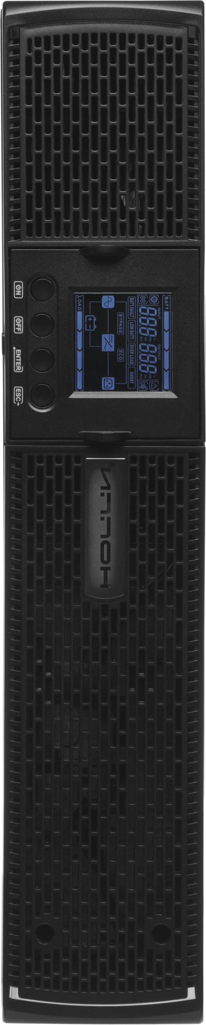 Одним из ключевых преимуществ модели является её практичность и удобство: ИБП прост в установке, эксплуатации и обслуживании. Металлический корпус обеспечивает высокую механическую прочность, а информативная передняя панель с ЖК-экраном и механическими кнопками упрощает контроль параметров. Дисплей отображает режим работы, уровень заряда, подключённую нагрузку, текущее напряжение и частоту сети.