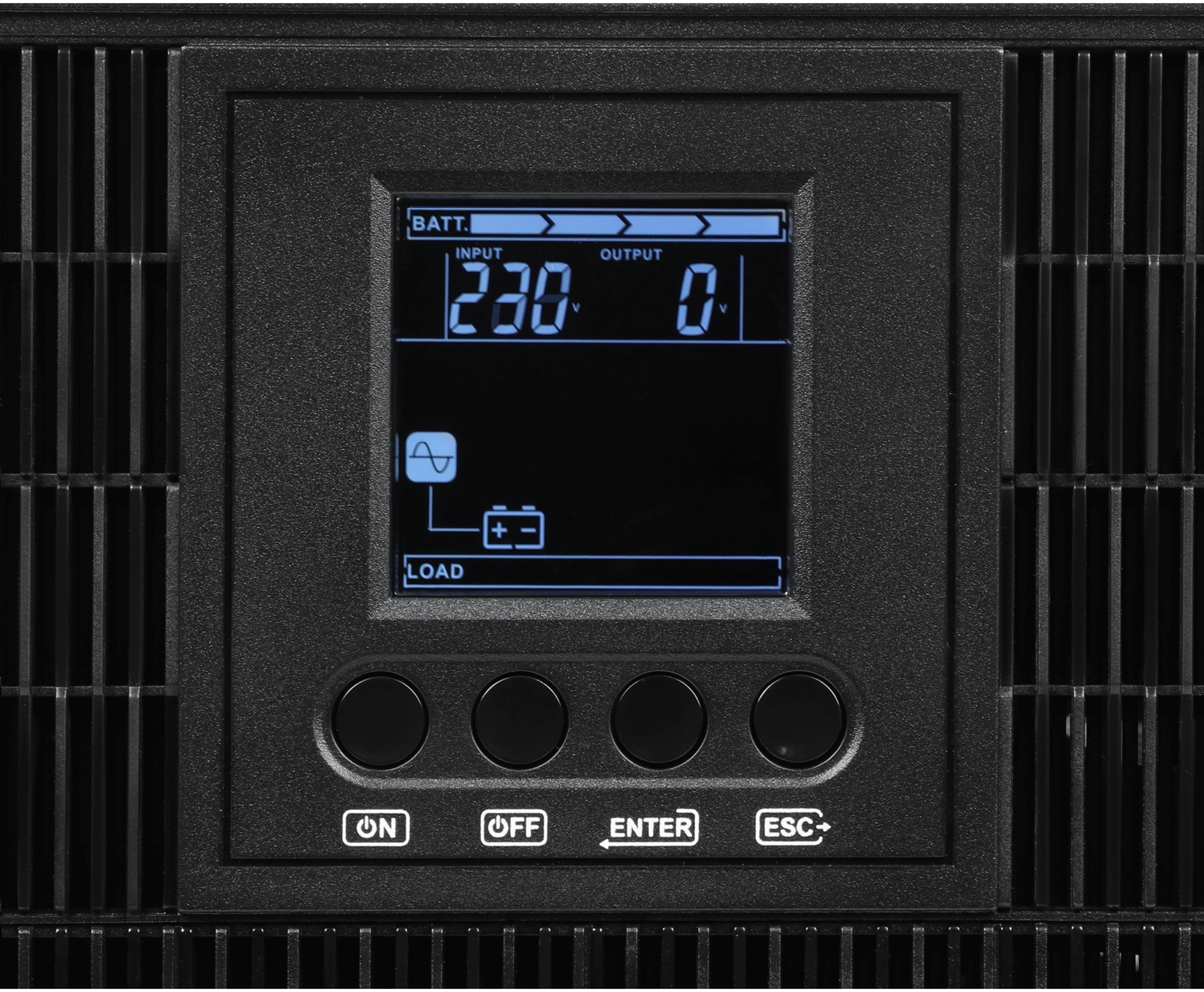 Многофункциональный графический ЖК-экран с подсветкой и кнопками управления обеспечит удобный мониторинг состояния ИБП и параметров электропитания.