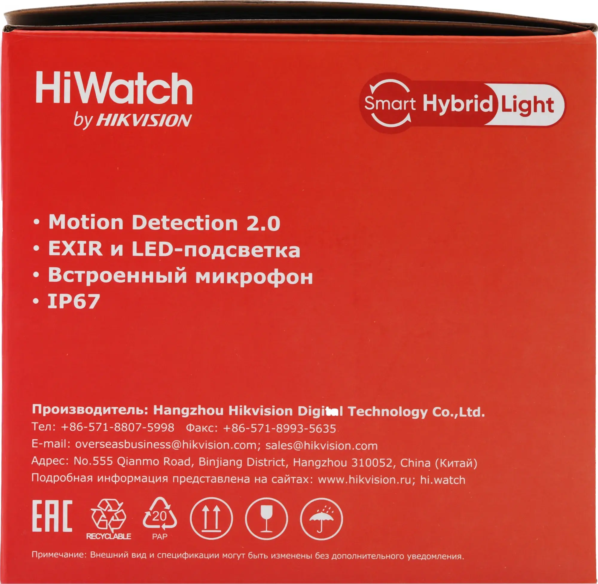 2Мп уличная IP-камера с гибридной Smart-подсветкой и встроенным микрофоном 1/2.9'' Progressive Scan CMOS матрица; объектив 2.8мм; угол обзора 103°; механический ИК-фильтр; 0.005Лк@F1.6; 1920×1080@25к/с; H.265/H.265+/H.264/H.264+/MJPEG, ROI, коридорный режим, DWDR; 3D DNR; BLC; EXIR-подсветка, подсветка белым светом до 20м; обнаружение движения 2.0; видеобитрейт 32кбит/с-8Мбит/с; G.711/G.722.1/G.726/MP2L2/PCM/AAC; встроенный микрофон; встроенный слот для microSD карты до 256Гб; IP67; защита от перенапряжений TVS, -40°C до +60°C; DC12В±25%/PoE(IEEE 802.3af); 6,5Вт макс.