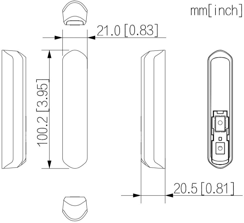 Расстояние обнаружения до 40 мм. Геркон. 1-канальный вход сухого контакта. Удаленная настройка, обновление и проверка состояния с помощью мобильного приложения. Встроенная батарея CR123A на срок до 5 лет. Тревога при низком заряде батареи. Мониторинг температуры в диапозоне -15°C ~ +65°C (в помещении). Двусторонняя связь и алгоритм шифрования AES128 обеспечивают стабильность и безопасность связи. Размеры:100x21x20мм. Рабочая температура -10°C ~ +55°C (внутри помещения).