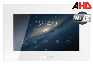 Монитор цветного видеодомофона 10 дюймов с емкостным сенсорным экраном с поддержкой форматов Full HD 1080p, HD 720p, CVBS, с возможностью отправления уведомлений о вызове в мобильное приложение "vhOme", удаленный просмотр на смартфоне происходящего у вызывной панели, удаленное управление замками, подключенными к вызывным панелям.
