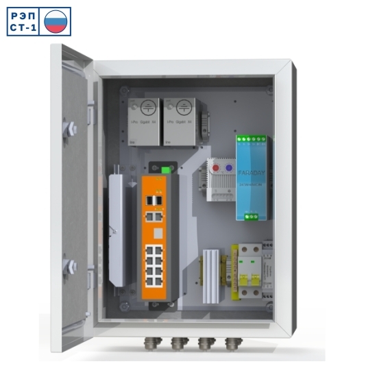 Коммутационный термошкаф Mastermann 6 УТП 8К IP 66 с защитным реле от "холодного пуска". Габариты (внешние): 300х400х210 мм (ШхВхГ) Предназначен для использования в любых климатических условиях на улице (-60°С +50°С) Степень пылевлагозащиты IP66. Корпус стальной 1,5 мм. Настенное крепление. Входное напряжение 220В Комплектация: Двухполюсный защитный автомат 6А - 1 шт.Обогреватель 50Вт - 1 шт. Сдвоенный термостат - 1 шт. Блок питания 240Вт -1 шт. Промышленный неуправляемый коммутатор 8*PoE 802.3 af/at (бюджет 230 Вт), 2*combo SFP - 1 шт. Оптический кросс 4 порта SC/SM - 1 шт. Гермовводы 8*PG9, 4*PG13,5 -1 комплект. Цвет ral 7035 (серый)