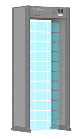 Габариты прохода (мм) ДхШхВ 2000х760х590 Внешние габариты (мм) 2200х880х690. Количество независимых зон обнаружения 11, 22, 33 Кол-во уровней регулировки общей чувствительности 584. Независимая регулировка чувствительности каждой зоны