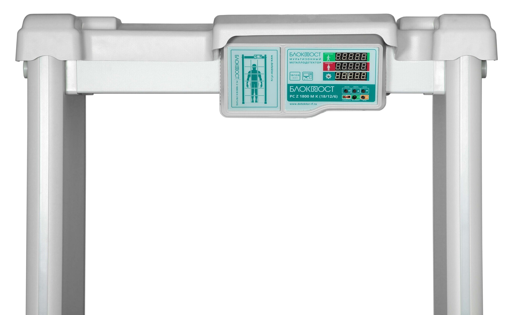 Арочный металлодетектор БЛОКПОСТ PC Z 1800 MK (18/12/6) (Габариты:2230х850х460 мм. Габариты транспортной упаковки: 2270 x 700 x 230 мм). 18/12/6 зон детектирования. Ширина прохода - 750 мм. Звуковая и световая индикации, параллельная эксплуатация (количество рабочих частот) - 50, повышенная помехоустойчивость. Пульт ДУ, "сухие контакты" на плате управления, подключение к ПК, SD CARD. Счетчик проходов, пропускная способность - 60 чел/мин. Пылевлагозащищенное покрытие корпуса, экспортная упаковка.