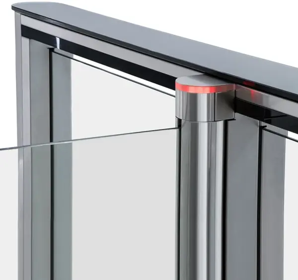 Скоростной проход со встроенным картоприемником ST-01 предназначен для установки на проходных с повышенными требованиями к дизайну, комфорту и пропускной способности. Встроенный картоприемник позволяет автоматизировать сбор гостевых пропусков. Состав две стойки со встроенной электроникой управления две верхние крышки передняя панель FP-01C со встроенным картоприемником две распашные створки из стекла центральная секция со встроенной электроникой управления и двумя створками из стекла (опционально) пульт дистанционного управления ST-01 может комплектоваться пятью вариантами створок и четырьмя вариантами верхних крышек. Исполнение из нержавеющей стали позволяет упростить установку дополнительного оборудования и повысить износостойкость крышек. Комбинированное исполнение сочетает в себе эффектный дизайн с простотой интеграции дополнительного оборудования. Крышки из нержавеющей стали с пластиковыми вставками позволяют установить считыватели бесконтактных карт. Установка дополнительного оборудования Для установки оборудования предусмотрены различные варианты стоек и кронштейнов. Возможна установка считывателей под крышки турникета (за исключением крышек, выполненных полностью из нержавеющей стали). Формирование зоны прохода Для увеличения количества зон прохода устанавливаются двусторонние секции STD-01. Каждая центральная секция позволяет организовать одну дополнительную зону прохода. Увеличенная ширина прохода позволяет организовать проезд маломобильных групп населения, а также дополнительный выход в случае чрезвычайной ситуации. При необходимости турникеты могут комплектоваться ограждениями, выполненными с ними в едином дизайне. Безопасность Система слежения снабжена двумя уровнями инфракрасных датчиков, 14 пары расположены на верхнем уровне и 28 на нижнем, что гарантирует безопасность прохода при высокой пропускной способности, а также защиту от прохода двух и более человек одновременно. Плата управления предусматривает аварийное открытие створок по сигналу пожарной сигнализации (вход Fire Alarm). Эксплуатация скоростных проходов ST-01 в детских учреждениях рекомендуется с использованием специализированной прошивки ST01_Children. Для получения прошивки и рекомендаций по ее установке обратитесь в техническую поддержку PERCo. Управление турникетом Управление скоростным проходом ST-01 возможно как от системы контроля доступа, так и автономно с помощью пульта дистанционного управления (входит в стандартный комплект поставки) или устройства радиоуправления (приобретается отдельно). Возможность выбора режима управления (импульсный или потенциальный) обеспечивает корректную работу в системах контроля доступа любых производителей. Режим работы — разрешение или запрет прохода — может быть задан независимо для каждого направления прохода. Встроенные в стойку инфракрасные датчики фиксируют реальный факт прохода и его направление, что обеспечивает корректный учет рабочего времени в системах контроля доступа. При разрешающем сигнале открытия турникета створки распахиваются. Плата управления конструктивно размещена в корпусе турникета и обеспечивает полный набор режимов управления турникетом, имеет входы для подключения сирены и выходы для подключения выносных индикаторов. Индикация Индикация состо