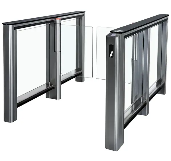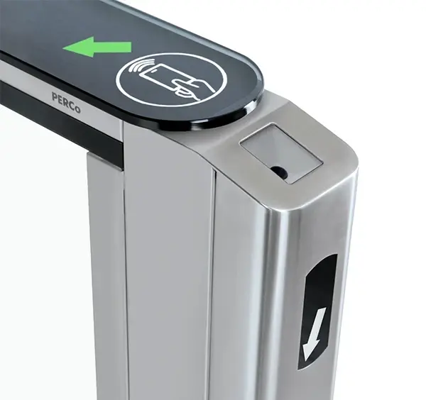 Скоростной проход PERCo ST-01 с передней панелью для сканирования штрихкода предназначен для организации проходных с повышенными требованиями к дизайну и комфортности прохода. Штрихкод применяется в качестве идентификатора на объектах массового пребывания людей, в том числе в системах платного доступа. Также штрихкод может использоваться в качестве гостевого идентификатора в бизнес-центрах, офисах и на предприятиях. Для идентификации штрихкодов используется сканер MERTECH N160 P2D. Состав две стойки со встроенной электроникой управления две верхние крышки передняя панель FP-01Q для установки сканера штрихкода или передняя панель FP-01Q.1 со встроенным сканером штрихкода две распашные створки из стекла центральная секция со встроенной электроникой управления и двумя створками из стекла (опционально) пульт дистанционного управления ST-01 может комплектоваться пятью вариантами створок и четырьмя вариантами верхних крышек. Исполнение из нержавеющей стали позволяет упростить установку дополнительного оборудования и повысить износостойкость крышек. Комбинированное исполнение сочетает в себе эффектный дизайн с простотой интеграции дополнительного оборудования. Крышки из нержавеющей стали с пластиковыми вставками позволяют установить считыватели бесконтактных карт. Установка дополнительного оборудования Для установки оборудования предусмотрены различные варианты стоек и кронштейнов. Возможна установка считывателей под крышки турникета (за исключением крышек, выполненных полностью из нержавеющей стали). Формирование зоны прохода Для увеличения количества зон прохода устанавливаются двусторонние секции STD-01. Каждая центральная секция позволяет организовать одну дополнительную зону прохода. Увеличенная ширина прохода позволяет организовать проезд маломобильных групп населения, а также дополнительный выход в случае чрезвычайной ситуации. При необходимости турникеты могут комплектоваться ограждениями, выполненными с ними в едином дизайне. Безопасность Система слежения снабжена двумя уровнями инфракрасных датчиков, 14 пары расположены на верхнем уровне и 28 на нижнем, что гарантирует безопасность прохода при высокой пропускной способности, а также защиту от прохода двух и более человек одновременно. Плата управления предусматривает аварийное открытие створок по сигналу пожарной сигнализации (вход Fire Alarm). Эксплуатация скоростных проходов ST-01 в детских учреждениях рекомендуется с использованием специализированной прошивки ST01_Children. Для получения прошивки и рекомендаций по ее установке обратитесь в техническую поддержку PERCo. Управление турникетом Управление скоростным проходом ST-01 возможно как от системы контроля доступа, так и автономно с помощью пульта дистанционного управления (входит в стандартный комплект поставки) или устройства радиоуправления (приобретается отдельно). Возможность выбора режима управления (импульсный или потенциальный) обеспечивает корректную работу в системах контроля доступа любых производителей. Режим работы — разрешение или запрет прохода — может быть задан независимо для каждого направления прохода. Встроенные в стойку инфракрасные датчики фиксируют реальный факт прохода и его направление, что обеспечивает корректный учет рабочего времени в системах контроля доступа. При р