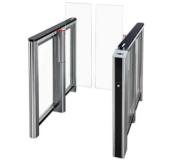 Компактный скоростной проход ST-11 со встроенным картоприемником предназначен для установки на небольших проходных с повышенными требованиями к дизайну, комфорту и пропускной способности. Встроенный картоприемник позволяет автоматизировать сбор гостевых пропусков. Состав две стойки со встроенной электроникой управления две верхние крышки передняя панель FP-11C со встроенным картоприемником две распашные створки из стекла центральная секция со встроенной электроникой управления и двумя створками из стекла (опционально) пульт дистанционного управления ST-11 может комплектоваться четырьмя вариантами створок и тремя вариантами верхних крышек. Особенность крышек из кварцевого искусственного камня - высокая износостойкость к внешним воздействиям. В отличие от акрилового искусственного камня, в кварцевом искусственном камне содержится до 90 процентов природного кварца - одного из прочнейших природных материалов. Исполнение из нержавеющей стали позволяет упростить установку дополнительного оборудования. Крышки из нержавеющей стали с пластиковыми вставками позволяют установить считыватели бесконтактных карт. Установка дополнительного оборудования Для установки оборудования предусмотрены различные варианты стоек и кронштейнов. Возможна установка считывателей под крышки турникета (за исключением крышек, выполненных полностью из нержавеющей стали). Формирование зоны прохода Для увеличения количества зон прохода устанавливаются двусторонние секции STD-11. Каждая центральная секция позволяет организовать одну дополнительную зону прохода. Увеличенная ширина прохода позволяет организовать проезд маломобильных групп населения, а также дополнительный выход в случае чрезвычайной ситуации. При необходимости турникеты могут комплектоваться ограждениями, выполненными с ними в едином дизайне. Безопасность Система слежения снабжена двумя уровнями инфракрасных датчиков, 24 пары расположены на верхнем уровне и 24 на нижнем, что гарантирует безопасность прохода при высокой пропускной способности, а также защиту от прохода двух и более человек одновременно. Плата управления предусматривает аварийное открытие створок по сигналу пожарной сигнализации (вход Fire Alarm). Эксплуатация скоростных проходов ST-11 в детских учреждениях рекомендуется с использованием специализированной прошивки ST11_Children. Для получения прошивки и рекомендаций по ее установке обратитесь в техническую поддержку PERCo. Управление турникетом Управление скоростным проходом ST-11 возможно как от системы контроля доступа, так и автономно с помощью пульта дистанционного управления (входит в стандартный комплект поставки) или устройства радиоуправления (приобретается отдельно). Возможность выбора режима управления (импульсный или потенциальный) обеспечивает корректную работу в системах контроля доступа любых производителей. Режим работы — разрешение или запрет прохода — может быть задан независимо для каждого направления прохода. Встроенные в стойку инфракрасные датчики фиксируют реальный факт прохода и его направление, что обеспечивает корректный учет рабочего времени в системах контроля доступа. При разрешающем сигнале открытия турникета створки распахиваются. Плата управления конструктивно размещена в корпусе турникета и обеспечивает полный на