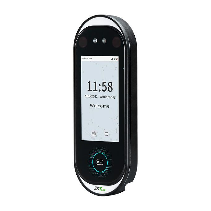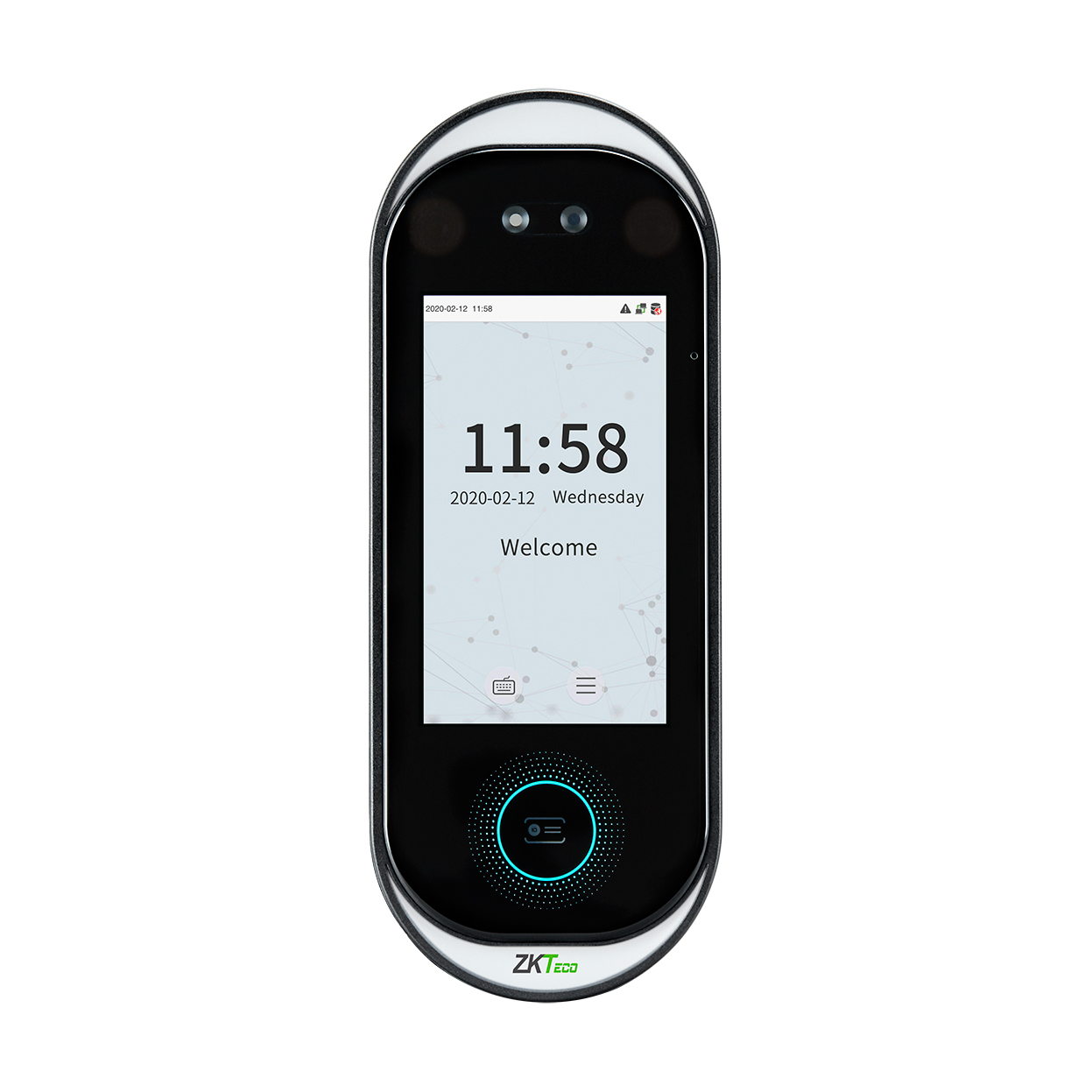ZKTeco SpeedFace M1 – гибридный биометрический терминал контроля доступа и учета рабочего времени с идентификацией по лицу, ладони и RFID картам. Терминал использует передовую технологию распознавания лиц Visible Light и имеет встроенный сканер ладони, который идентифицирует по 3 признакам (форма ладони, отпечаток ладони и узор вен ладони). Дистанция распознавания лиц увеличена до 3 метров, что позволяет идентифицировать быстро идущих людей. В то время как большинство алгоритмов поддерживают под углом не более 15 градусов распознавание, оборудование ZKTeco поддерживает распознавание лиц под углом до 30 градусов. SpeedFace M1 поддерживает гибридную идентификацию (лицо, ладонь, карта, пароль) и алгоритм анти-спуфинга (защиту от поддельных идентификаций). Память: 3 000 шаблонов ладоней, 6 000 (1:N) шаблонов лиц, 10 000 шаблонов RFID карт, 200 000 память журнала событий Дисплей TFT 5″ сенсорный Интерфейсы связи: TCP/IP, Wiegand (вход / выход), RS-485, Wi-Fi (Опция) Встроенный считыватель RFID карт EM-Marine 125 кГц Совместимость с программными модулями ZKBioAccess IVS